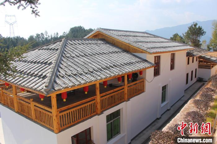 圖為尾林村原本破敗的舊村部,如今被改造一新,全新的灰瓦屋頂既美觀又解決了漏水問題;二樓的平頂裝上屋頂和欄桿,擺上茶桌,成為觀景、茶歇的平臺。永泰縣臺港澳辦供圖