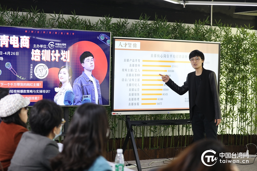 4月24日,由中國臺灣網舉辦的海峽兩岸古風茶裳直播季·臺青電商培訓進行中。(中國臺灣網發)