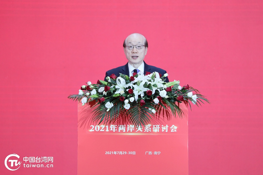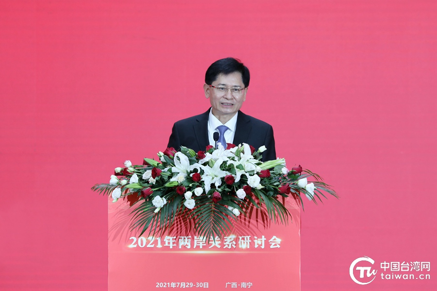 中國臺灣網7月29日南寧訊 (記者 尹賽楠)盛夏的邕城,道路在探索中清晰,選擇在碰撞中堅定,情感在交流中升溫。7月29日,由海峽兩岸關系研究中心主辦的2021年兩岸關系研討會在廣西南寧開幕。活動以線上線下相結合的方式,吸引了來自海峽兩岸的100余位專家學者以及長期致力于兩岸關系研究的人士與會。中共中央臺辦、國務院臺辦主任劉結一,中共廣西壯族自治區黨委副書記、廣西壯族自治區主席藍天立,中國國民黨前主席、中華青雁和平教育基金會董事長洪秀柱出席研討會開幕式并致辭。