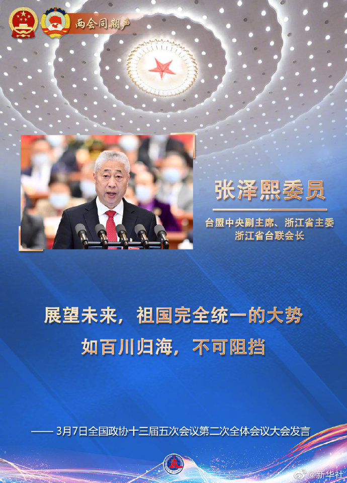 張澤熙委員:展望未來,祖國完全統一的大勢如百川歸海,不可阻擋