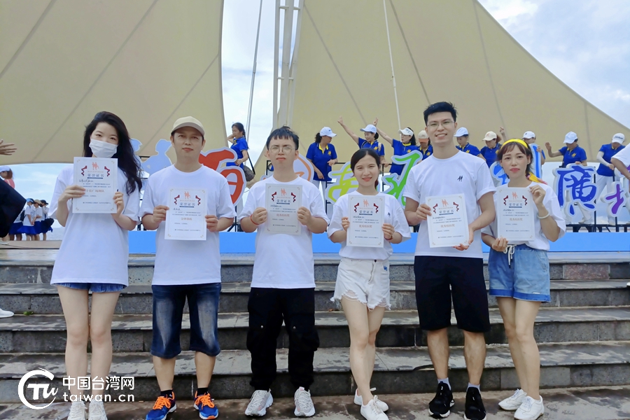 臺灣地區(qū)參演團(tuán)隊獲獎代表主會場領(lǐng)獎合影。(中國臺灣網(wǎng) 發(fā))