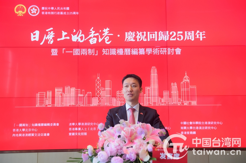 中國臺灣網6月30日北京電(記者 李柏濤)在香港回歸祖國25周年紀念日前夕,由“一國兩制”知識臺歷編輯委員會、清華大學港澳研究中心、北京航空航天大學一國兩制法律研究中心、南開大學臺港澳法研究中心、中國臺灣網、香港紫荊網等單位聯合主辦的“日歷上的香港·慶祝回歸25周年暨‘一國兩制’知識臺歷編纂學術研討會”,30日在香港大學北京中心舉行,來自學術界、教育界、法律界及媒體界的四十多位代表與會。