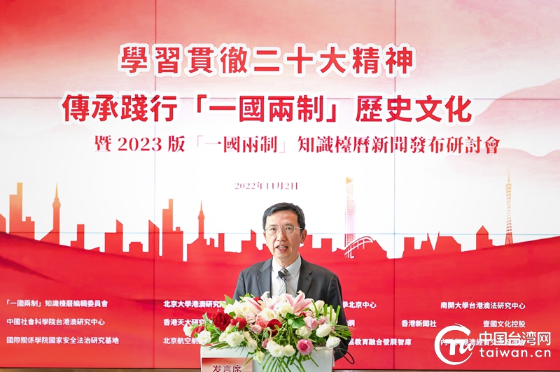 2022年11月2日,“學習貫徹二十大精神·傳承踐行‘一國兩制’歷史文化暨2023版‘一國兩制’知識臺歷新聞發布研討會”在香港大學北京中心舉辦。(中國臺灣網 發)