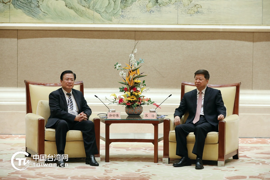 中國臺灣網3月21日北京訊 (記者李柏濤、尹賽楠、符海川)中共中央臺辦、國務院臺辦主任宋濤21日在北京會見了理事長許舒博率領的臺灣商業總會大陸經貿交流團。