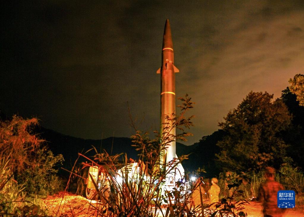 這是參演火箭軍某部在起豎導彈(4月8日攝)。新華社發(劉明松 攝)
