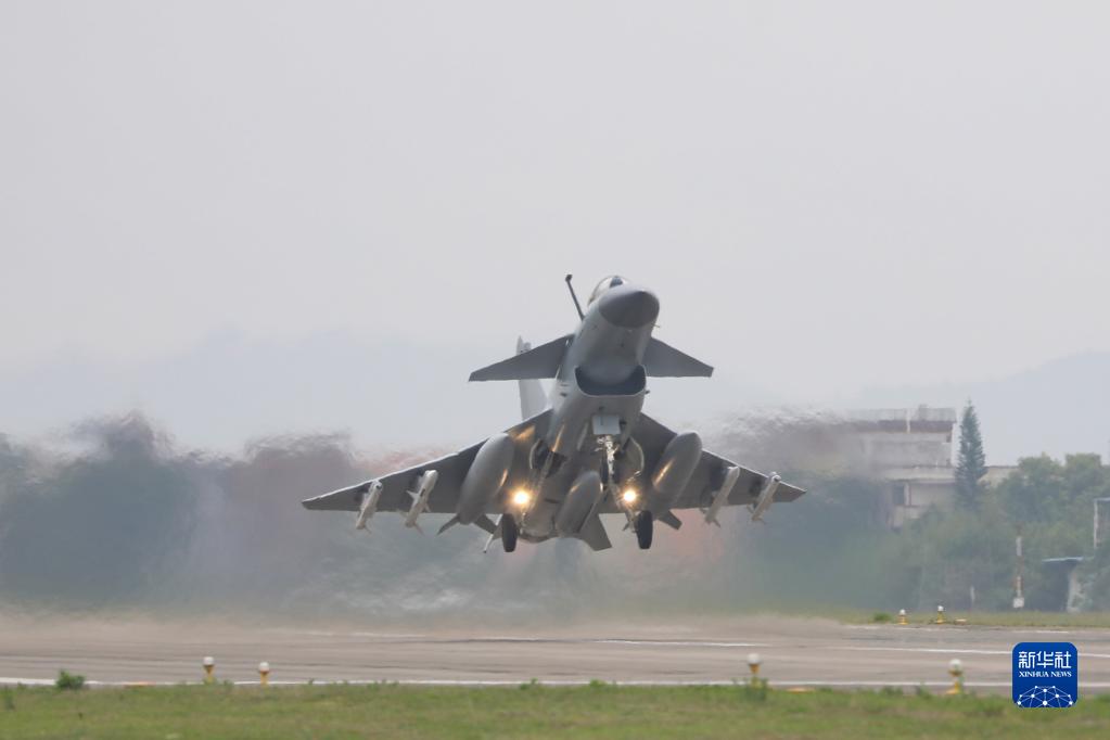 這是殲擊機掛彈起飛(4月8日攝)。新華社發(王紫簫 攝)