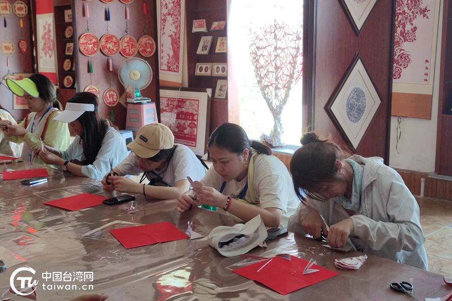臺灣青年們聚精會神學習剪紙。(中國臺灣網(wǎng) 高嘉鴻 攝)