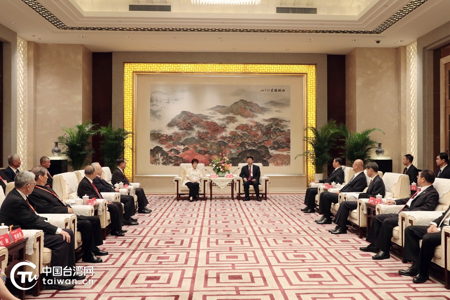 中共中央臺(tái)辦、國(guó)務(wù)院臺(tái)辦主任宋濤7月24日在南京會(huì)見中國(guó)國(guó)民黨前主席、中華青雁和平教育基金會(huì)董事長(zhǎng)洪秀柱等參加第三屆“攜手圓夢(mèng)——兩岸同胞交流研討活動(dòng)”的臺(tái)灣嘉賓代表。(中國(guó)臺(tái)灣網(wǎng) 尹賽楠 攝)