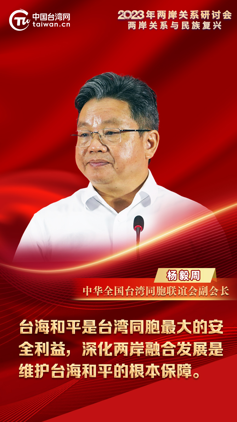 2023年兩岸關系研討會8月17日上午在四川成都開幕。中華全國臺灣同胞聯誼會副會長楊毅周在致辭時表示,臺海和平是臺灣同胞最大的安全利益,深化兩岸融合發展是維護臺海和平的根本保障。
