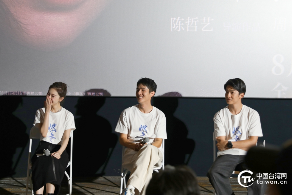 圖為《燃冬》導演與三位主演。(中國臺灣網 郁誠 攝)