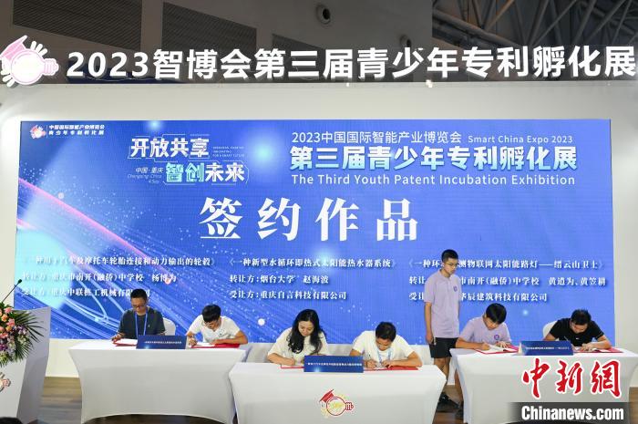 9月4日,2023智博會第三屆青少年專利孵化展在重慶舉行作品簽約。中新社記者 何蓬磊 攝