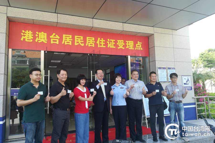 成功申領中華人民共和國臺灣居民居住證的臺胞于廈門市合影留念,《港澳臺居民居住證申領辦法》于2018年9月1日正式實施。(中國臺灣網 發)