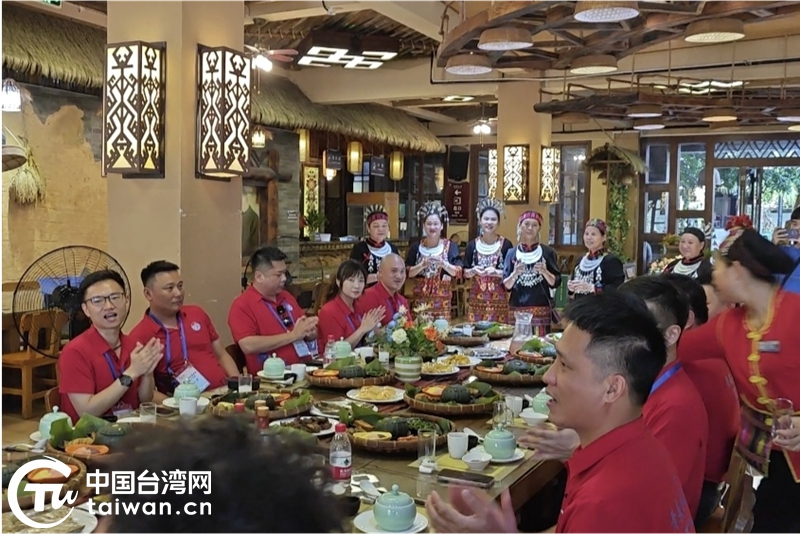 在海峽兩岸交流基地——檳榔谷參觀交流時,臺灣青年們通過品嘗當地特色的長桌宴等活動,親身感受獨特的黎族文化。他們紛紛表示:“兩岸一家親,我們都是中國人,都是龍的傳人,有著相同的心靈歸宿!