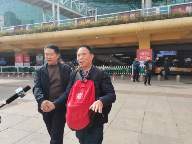 3月12日,在濰坊火車站出站口,50歲的濰坊市民鞠治良雙手緊握于身前,表情凝重,望著一波又一波出站的旅客。當他在人群中看到了期盼已久的人,眼睛里頓時有了光,向對方使勁揮動著手。順著鞠治良的目光望去,被稱為老兵“靈魂擺渡人”的劉德文迎面而來,這次他帶著鞠治良爺爺鞠榮國的骨灰跨越海峽,從臺灣送回到了濰坊。