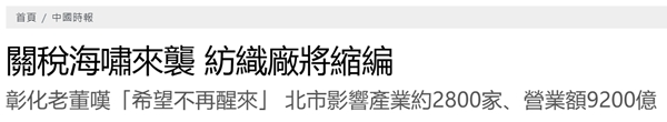 受沖擊的不止股市,也延伸到各行各業(yè)。不止高科技產(chǎn)業(yè),許多中小企業(yè)也都遭殃。一家彰化老字號紡織工廠傳出將縮編、放無薪假因應(yīng),廠家負(fù)責(zé)人表示近年來訂單大幅縮減,關(guān)稅提高恐成最后一擊。他說:“真希望睡了就不用再醒來!”
