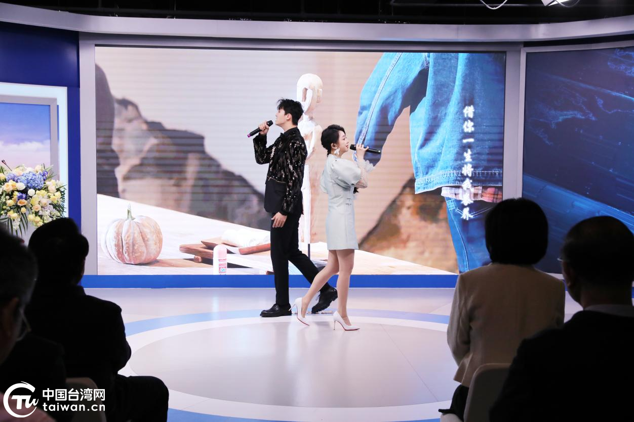 發布會現場,來自中國臺灣地區的青年歌手魏暉倪與中國鐵路文工團青年歌唱演員趙學飛對唱《青山青》主題曲。(中國臺灣網記者 陳佳慧 攝)