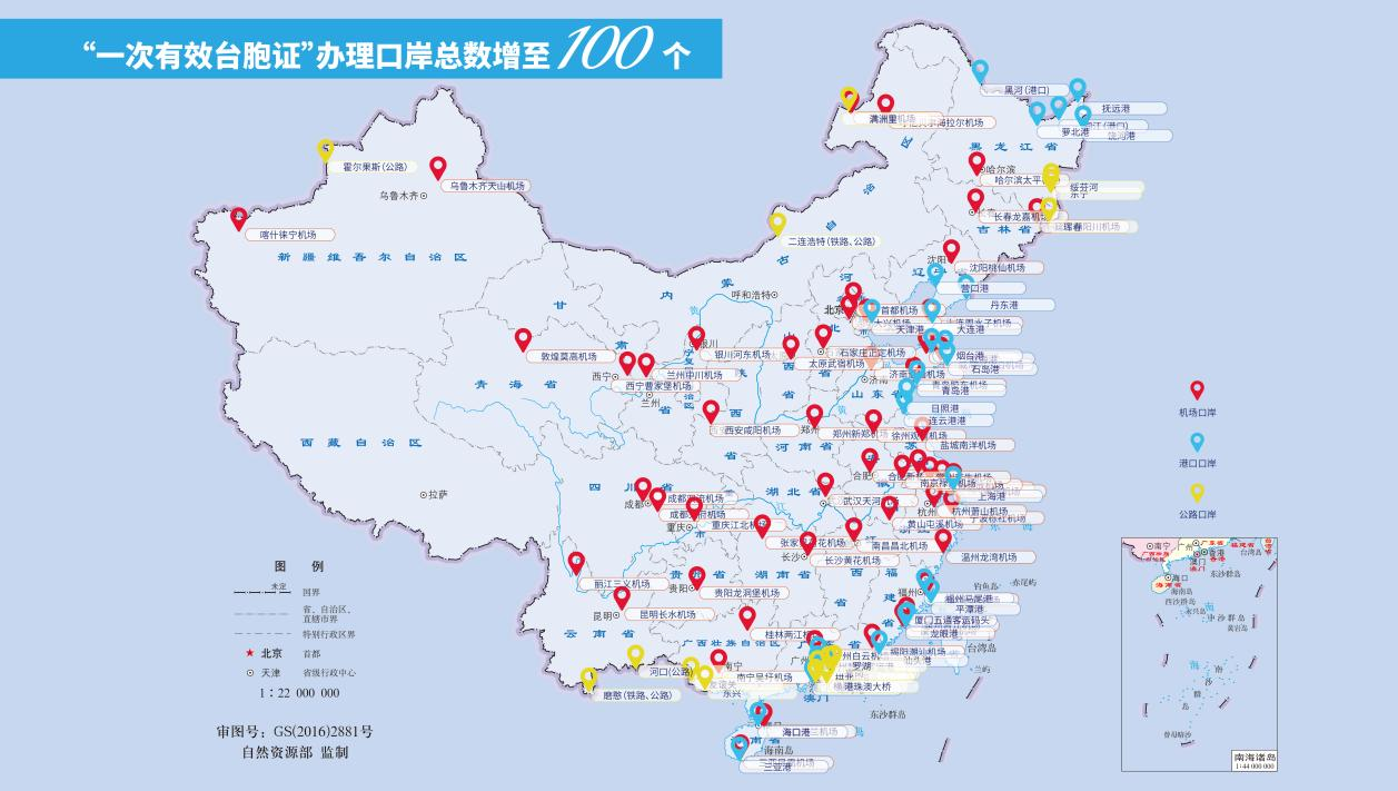 11月20日起,可簽發一次有效臺灣居民來往大陸通行證口岸數量至100個。(國務院臺辦微信公眾號)