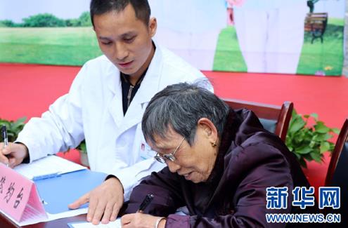2016年11月11日,重慶沙坪壩區(qū)新橋社區(qū)衛(wèi)生服務中心集中舉辦“家庭醫(yī)生”服務簽約儀式。圖為居民代表簽約家庭醫(yī)生現(xiàn)場。(圖片來源:新華網(wǎng))