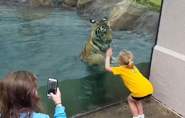 英動物園老虎與女童嬉鬧玩耍上演“人虎奇緣”