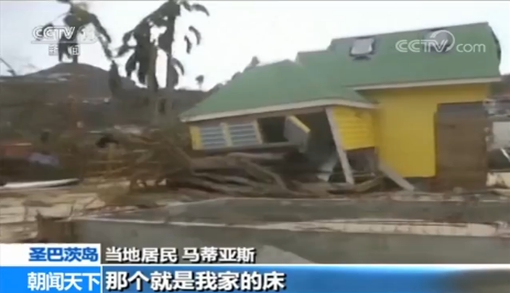 圣巴茨島當地居民 馬蒂亞斯:這里原來是我的家,現在什么都沒有了, 那個就是我家的床。記者:你家客廳在哪兒?那堆水泥那兒就是,現在就只剩下這個了,別的所有東西都被毀了,這后面本來是我的臥室,但現在什么也沒有剩下。