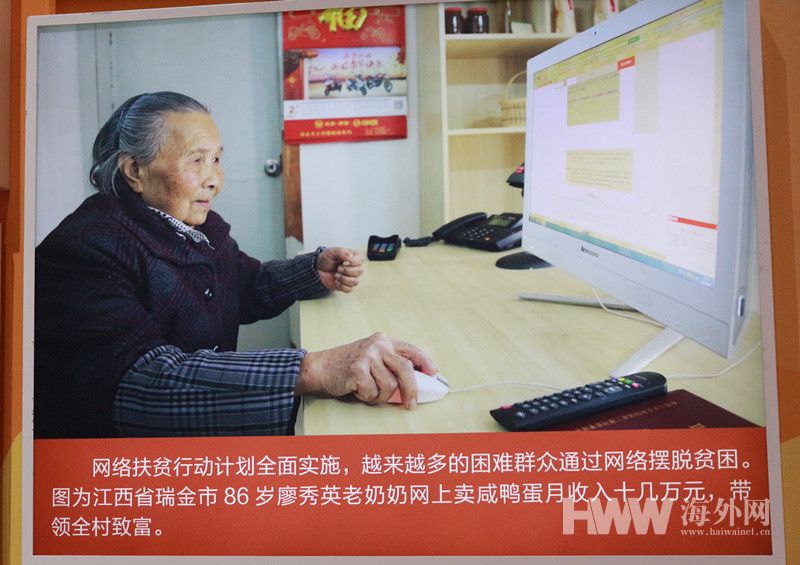 今年86歲的廖秀英老奶奶是咸鴨蛋腌制手藝人,也是位不折不扣的網(wǎng)絡(luò)達(dá)人。文化建設(shè)展區(qū)的墻上,有一副廖奶奶認(rèn)真操作電腦的照片,非常醒目。從事醫(yī)護(hù)工作的羅女士說,老人上網(wǎng)就很少見,而八旬老人靠網(wǎng)上賣咸鴨蛋“月收入十幾萬元”,簡直是難以置信!