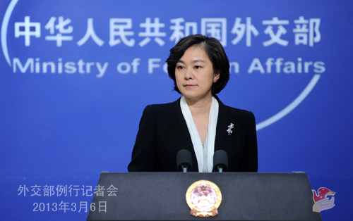 2013年3月6日,外交部發言人華春瑩主持例行記者會。