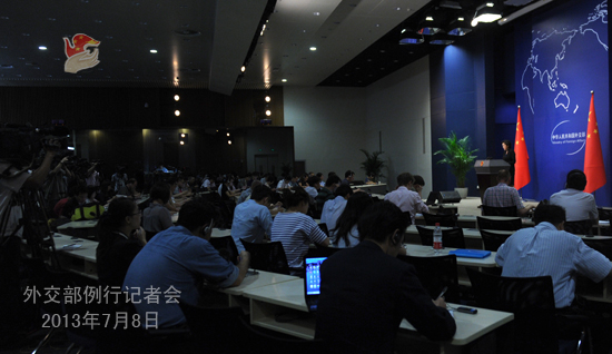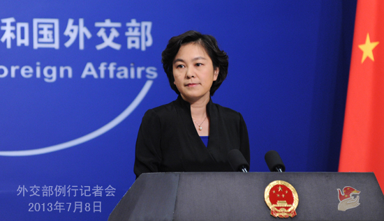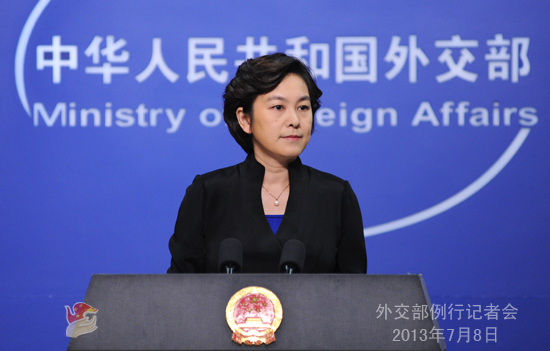 2013年7月8日,外交部發(fā)言人華春瑩主持例行記者會(huì)。