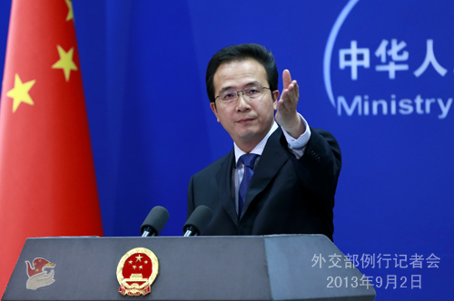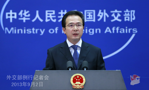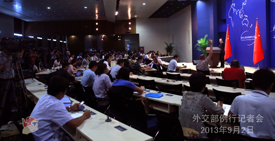 2013年9月2日,外交部發言人洪磊主持例行記者會。