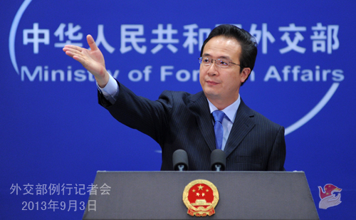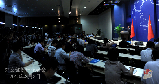 2013年9月3日,外交部發言人洪磊主持例行記者會。