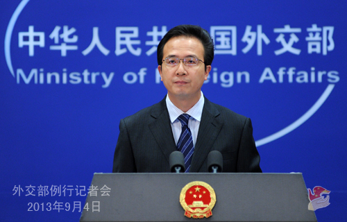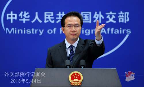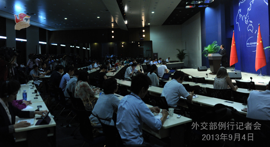 2013年9月4日,外交部發(fā)言人洪磊主持例行記者會(huì)。