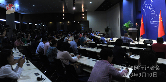 2013年9月10日,外交部發言人洪磊主持例行記者會。