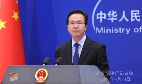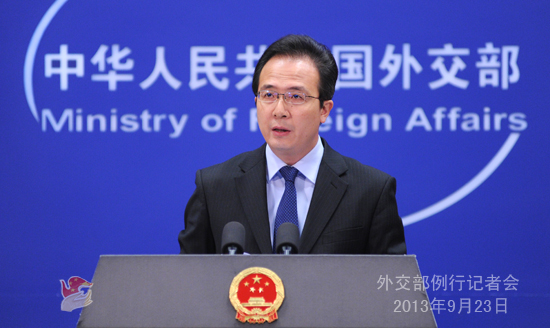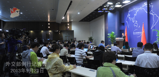 2013年9月23日,外交部發言人洪磊主持例行記者會。