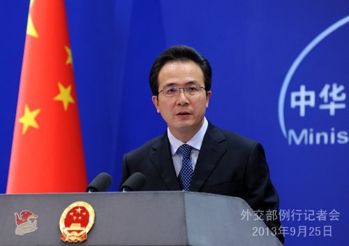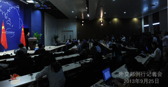 2013年9月25日,外交部發言人洪磊主持例行記者會。