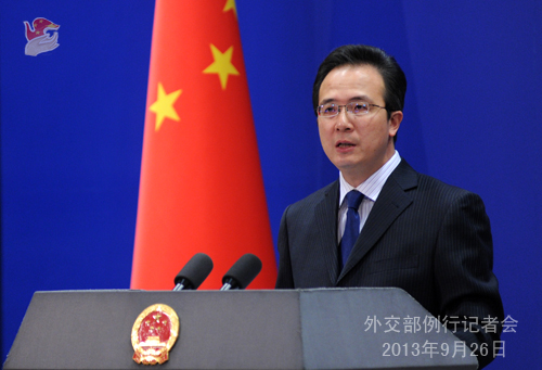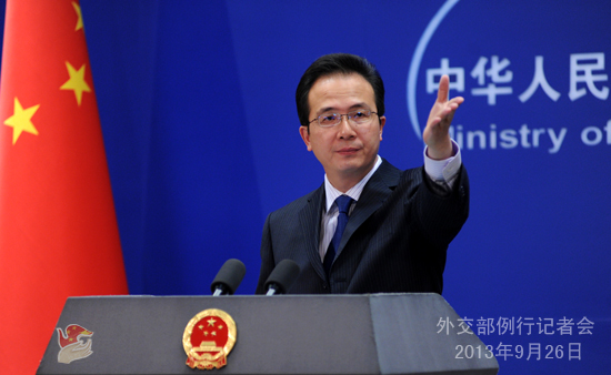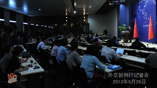 2013年9月26日,外交部發言人洪磊主持例行記者會。