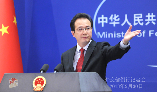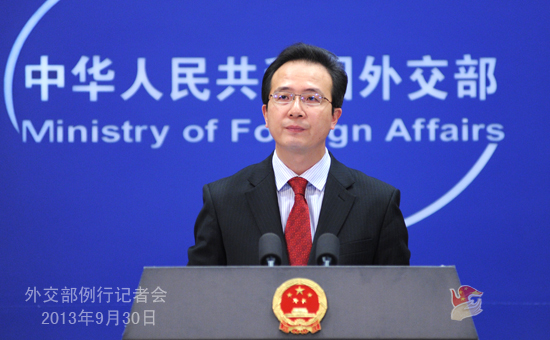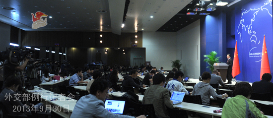 2013年9月30日,外交部發(fā)言人洪磊主持例行記者會。