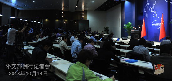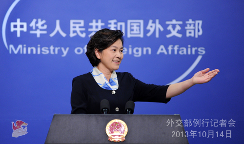 2013年10月14日,外交部發言人華春瑩主持例行記者會。