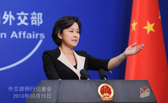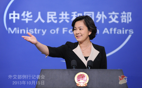 2013年10月15日,外交部發言人華春瑩主持例行記者會。