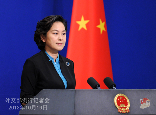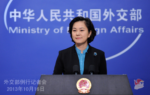 2013年10月16日,外交部發言人華春瑩主持例行記者會。