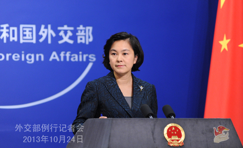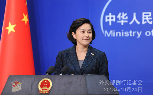 2013年10月24日,外交部發言人華春瑩主持例行記者會。
