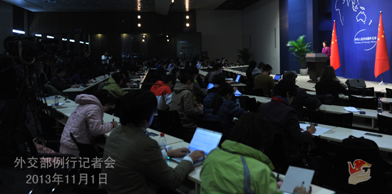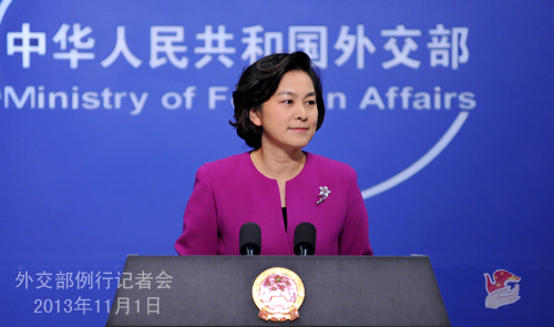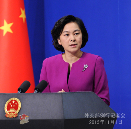 2013年11月1日,外交部發(fā)言人華春瑩主持例行記者會。