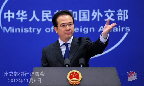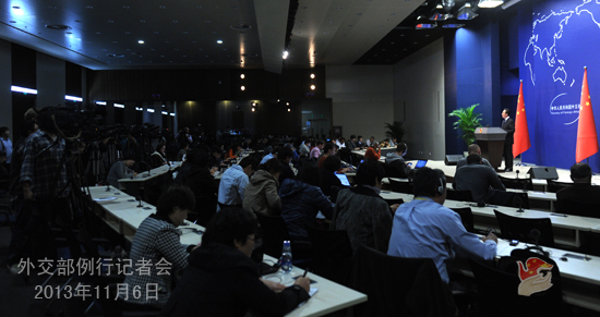 2013年11月6日,外交部發(fā)言人洪磊主持例行記者會(huì)。