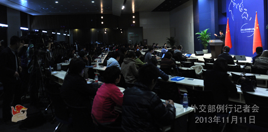 2013年11月11日,外交部發言人秦剛主持例行記者會。