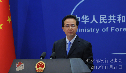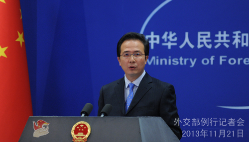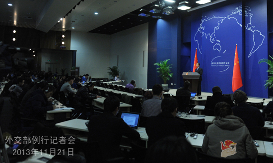 2013年11月21日,外交部發言人洪磊主持例行記者會。