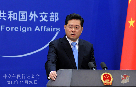 2013年11月26日,外交部發(fā)言人秦剛主持例行記者會。