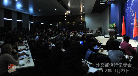 2013年11月27日,外交部發(fā)言人秦剛主持例行記者會(huì)。