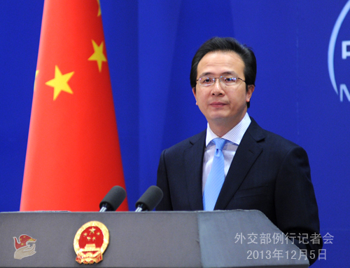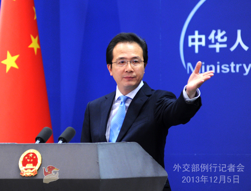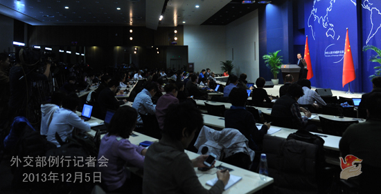 2013年12月5日,外交部發(fā)言人洪磊主持例行記者會。