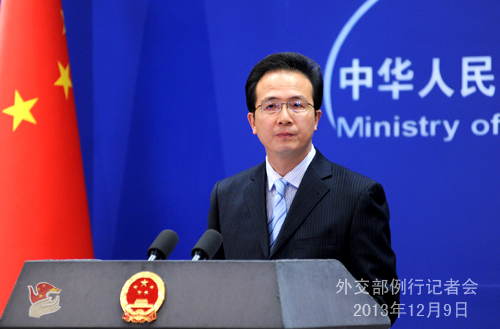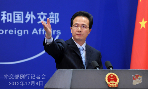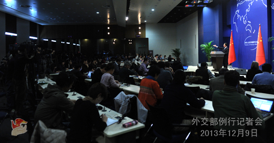 2013年12月9日,外交部發言人洪磊主持例行記者會。