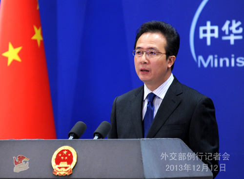 2013年12月12日,外交部發言人洪磊主持例行記者會。