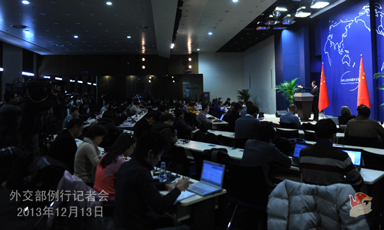 2013年12月13日,外交部發(fā)言人洪磊主持例行記者會。