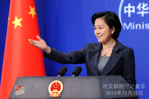 2013年12月16日,外交部發(fā)言人華春瑩主持例行記者會。